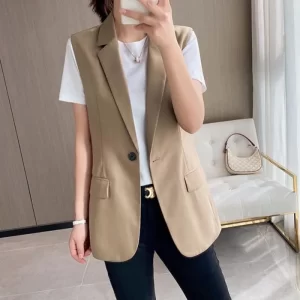 - Blazer sans manches de couleur neutre.